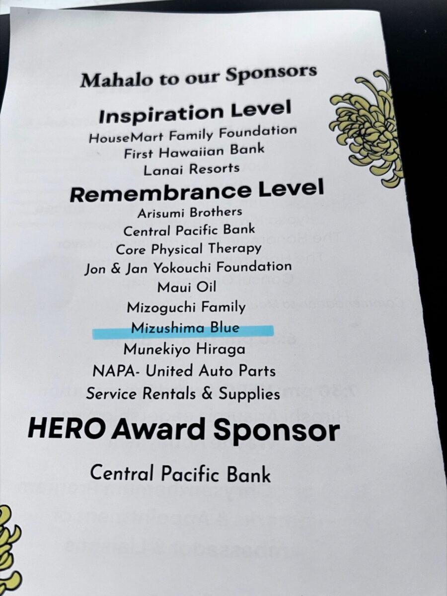 2026年4月24日マウイ島で開催の「Chrysanthemum Gala」へ企業スポンサーとして寄付いたしました。